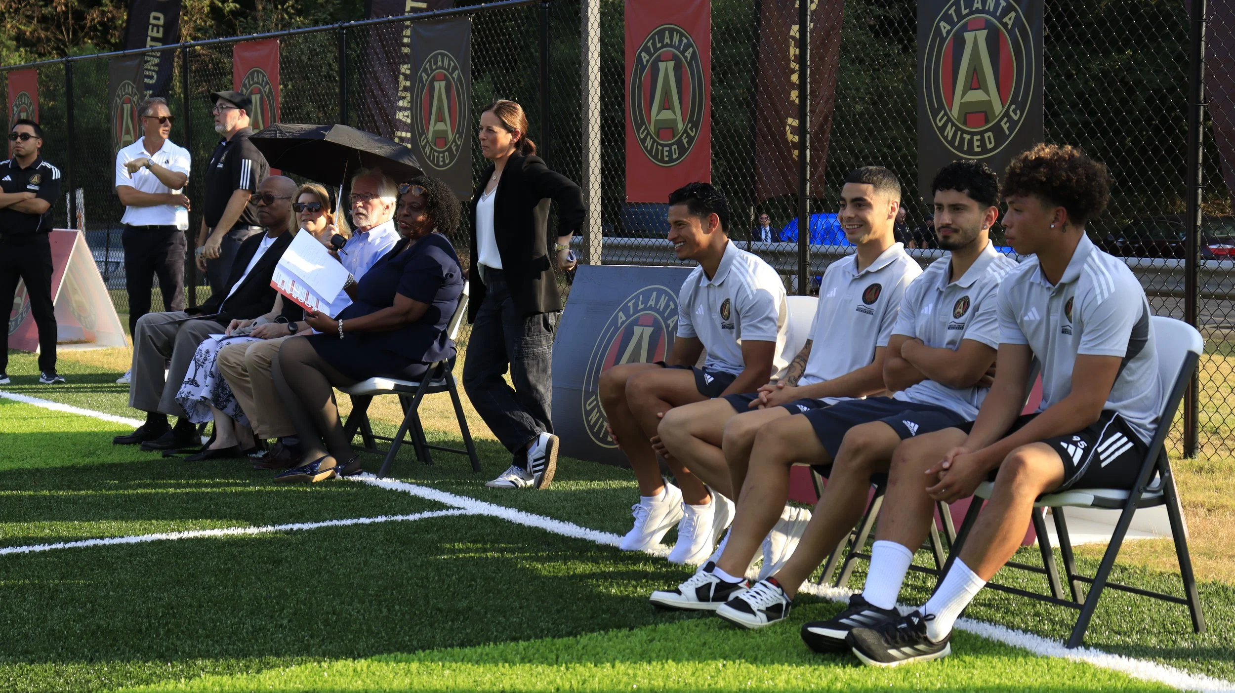 After the ribbon was cut, children took the field for a Youth Soccer Clinic & Tournament, bringing the new pitch to life with energy and excitement. Fans also had the chance to meet Atlanta United players for photos and autographs—making the day unforgettable for families and soccer lovers alike.